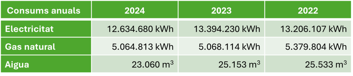 Les mesures adoptades en els últims anys en diferents àmbits han contribuït a una reducció progressiva del consum d’energia, gas i aigua, consolidant una tendència a la baixa.